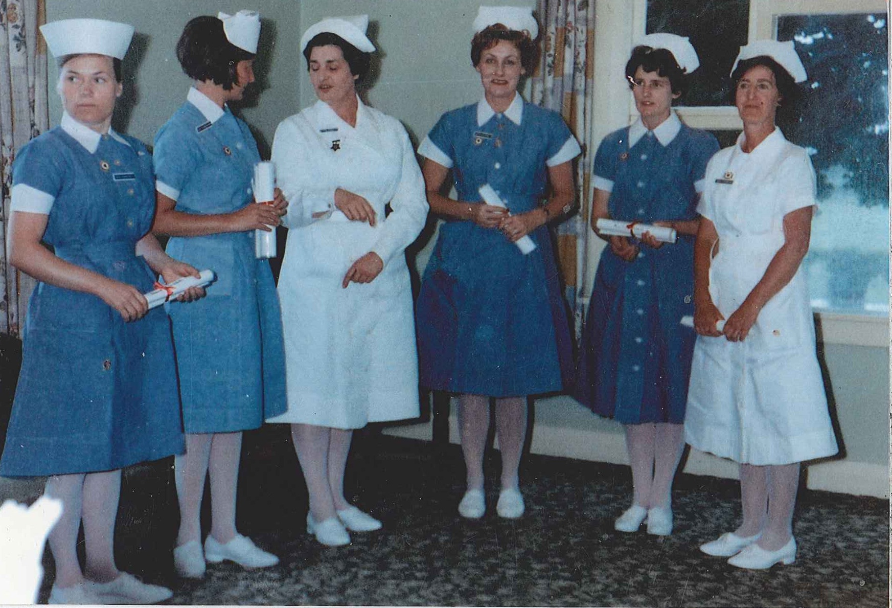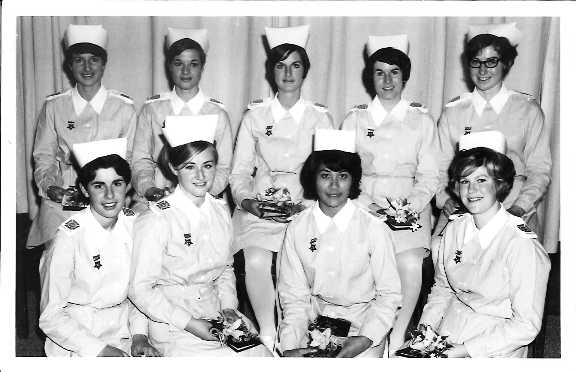 | 09:50, 29 January 2015 | Hilary Black graduation.jpg (file) | 302 KB | Jill | Graduation, 2 September 1968. Back row: Hilaire Evans, Trish, Mel Carruthers, Mary Smith (nee Halliwell), Hilary Reaney. Front row: Francis Rogers, Leah Lebar (Samoan), Joyce Blake, Jill Muir. Seven nurses were from Hilary’s original class. The two o... | 1 | |